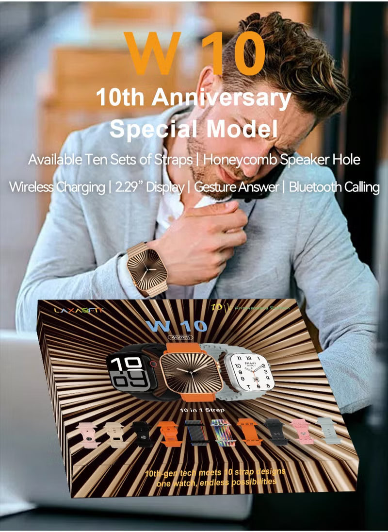 استمتع بالتكنولوجيا المتطورة مع طقم W10 للساعة الذكية عالية الدقة، بشاشة كبيرة قياس 2.29 بوصة...
