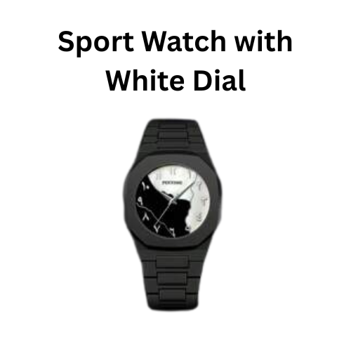 الساعة الرياضية: تصميم جريء بحزام مطاطي أسود مقاوم للتعرق.